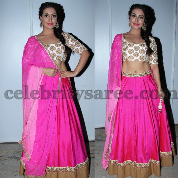 Nandini Roy Pink Lehenga Saree Blouse Patterns - These blouses mostly come with a straight neckline, high neck, or at times collars which take after the conventional 15 round neck blouse.