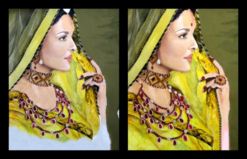Aishwarya Rai As Jodhabai Girly Drawings Mughal Miniature Paintings Woman Face Silhouette - Devdas photograph, aishwarya rai in jodha akbar picture, devdas stock image, celebrities stock photo.